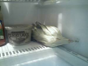 We’ll start with the white container. Hmm, upon shaking, it sounds like peas. I’m correct! Well, they don’t appear to have too much freezer burn, and they are still green…I’m no scientist, but I’ll let those guys slide. Next up, a box of fudgsicles. Word of advice–never let happy packaging fool you. These poor things expired April 13, 2007. That’s pretty bad, but I have a feeling there are worse discoveries just waiting for me to peel back their foil.