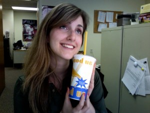I get in–no line or anything. It seems that most of the customers already in there have no idea. I spy a girl my age sort of looking around, like me, for the iced coffee dispenser, or counter. It is clear we have never been in there before, and we become friends over our love of free coffee. It was a short term friendship, but a fruitful one—we figured out that the iced coffee was right by the fountain soda and you have to drink the iced coffee out of the same cups as you would fountain soda. Odd. That’s not how Cafe Metro does it, or DD. Well, they are French.