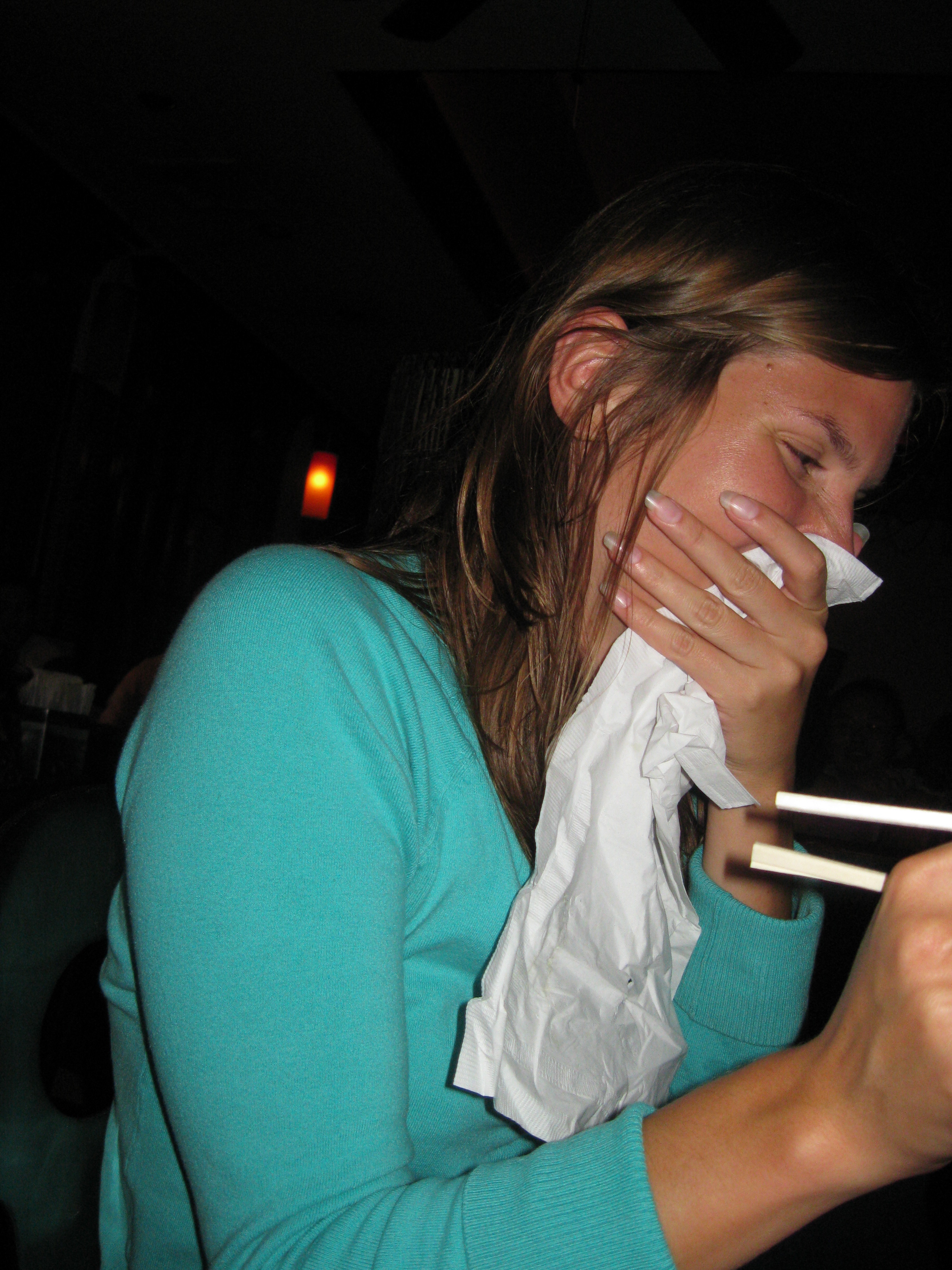 Monday—back on track! I have to eat breakfast before I leave the house, so every day I have toast with peanut butter and a glass of milk (hard habit to break). But last week I scored at Duane Reade and Special K was on sale two boxes for $5, so I’ve been having that instead. I try to make my one “big” meal of the day dinner, so I eat a little bit throughout the day instead of a huge lunch (also helps with sleepiness at work). Monday’s was pieces of broccoli with ranch dressing around 12:30, hard-boiled egg around 3, and a yogurt at 4:45 to hold me over for yoga. My friend Megan came over for dinner, and we made tuna cakes (think crabcakes with tuna) with a side of salad. Dessert was a few non-pareils (Megan made fun of me, apparently everyone else calls them sno-caps?), I tend to always have something sweet after dinner.